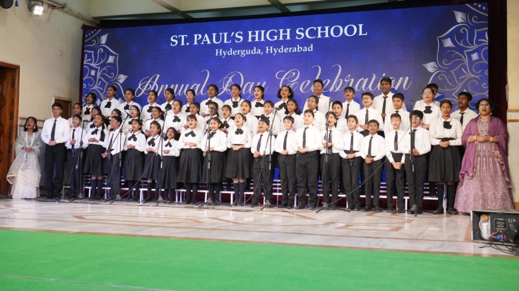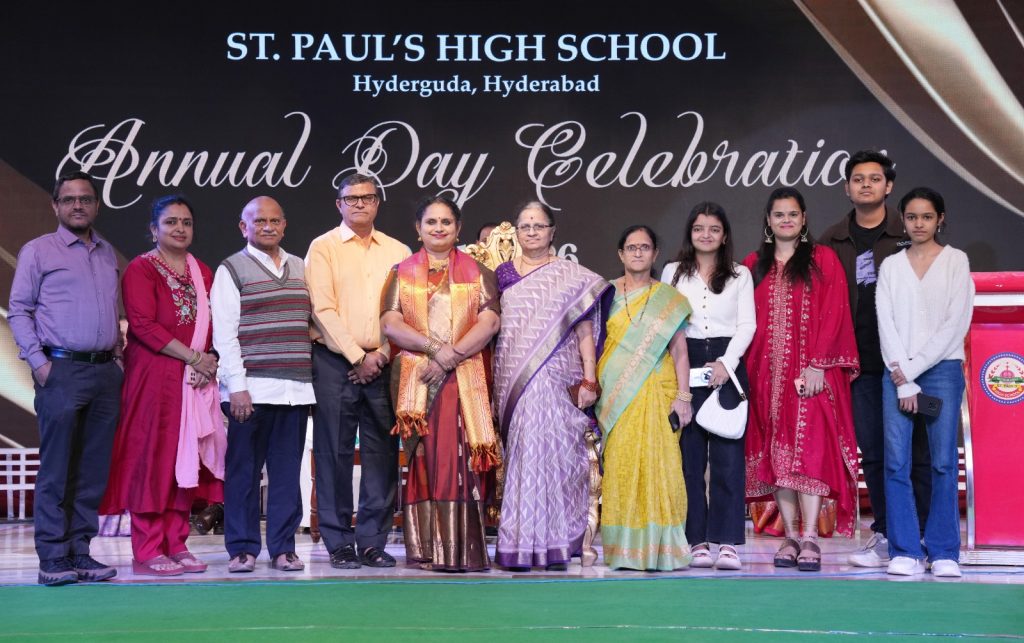 The 72nd Annual Day of St. Paul’s High School was celebrated with great magnificence and splendour on 10 January 2026. The Chief Guest for the occasion was the Honourable Justice of the High Court for the State of Telangana, Shri. Natcharaju Shravan Kumar Venkat, Alumnus 1982 batch. The Guests of Honour were Mr. & Mrs. C. Srikar, the parents of the Head Boy, Vishruth. C and Mr. & Mrs. K. Sridhar, the parents of the Head Girl,K. Pravasthi. They were given a ceremonial guard of honour after being duly badged and lead into the audience. The event commenced with a soulful Prayer Song followed by a mesmerising traditional Welcome Dance. The Principal Rev. Bro. Sudhakar Reddy in his Welcome address emphasized the importance of carefully guiding the children in this digital age by parents and teachers. The Primary School Incharge Rev.Bro.Chinnappa Reddy cordially welcomed the Chief Guest with a sapling. The Guests of Honour were warmly greeted with a sapling by the Head Boy and the Head Girl.